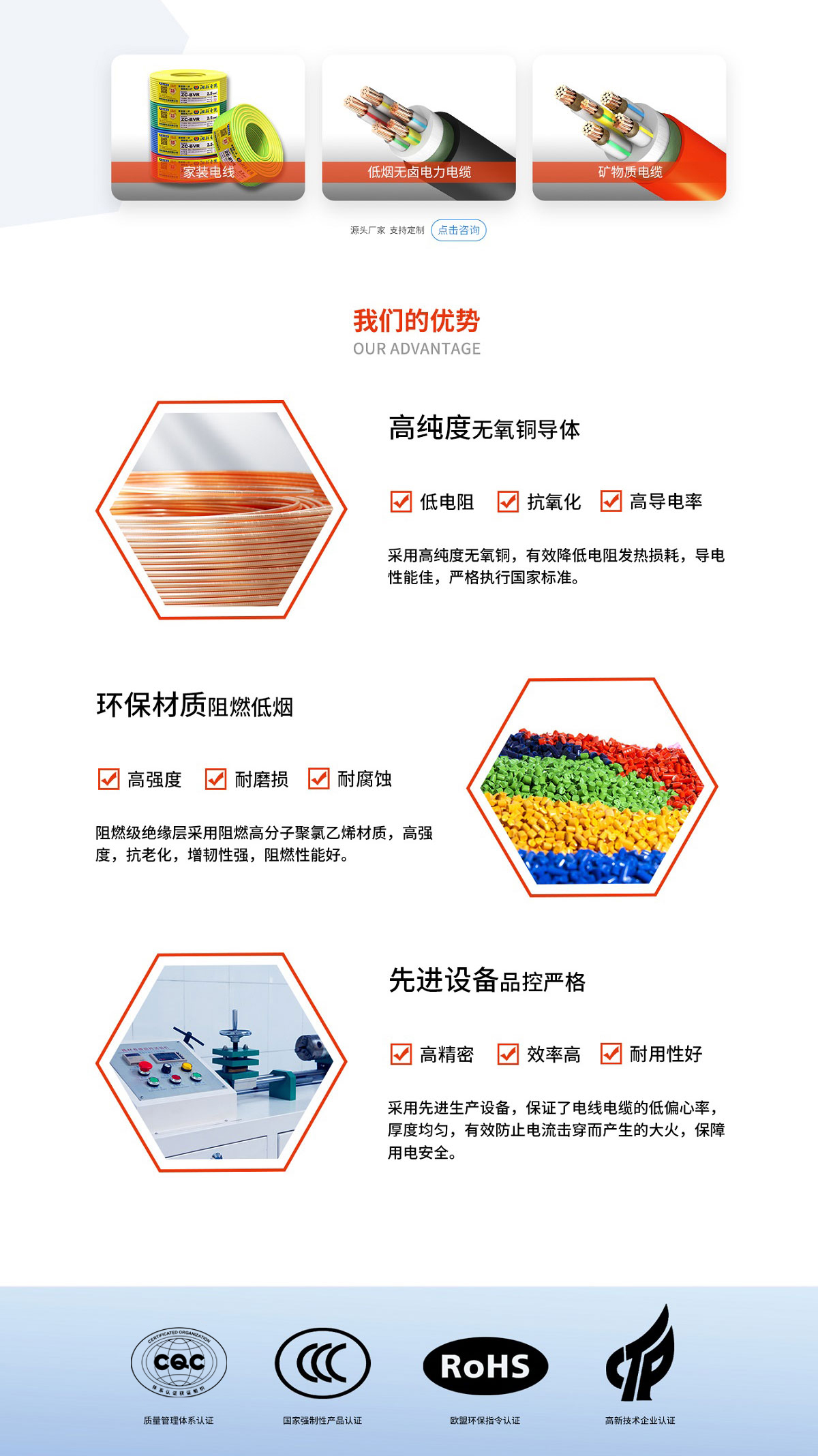 公司拥有国内一流的电线电缆生产和检测设备,以科学的经营管理理念,引进高级专业技术及管理人才,组建实力雄厚的技术研发和企业管理团队,建立高标准质量管理体系,对生产全过程实现智能化数字化管理。公司是国家高新技术企业、国家级专精特新“小巨人”企业、CNAS国家重点实验室、湖南省企业技术中心、长沙市技术中心、湖南省新材料企业、湖南省绿色制造体系示范单位(绿色工厂)、湖南省制造业品牌培育试点企业、湖南省产融合作制造业重点企业、湖南省守合同重信用企业、长沙市专精特新小巨人企业、长沙市技术创新中心(产业引导类)、湖南省制造业品牌培育示范企业、浏阳市诚信企业,先后通过国家强制性产品认证(CCC认证),全国工业生产许可证,欧盟CE认证、质量管理体系认证(ISO9001)、中国职业健康安全管理体系认证(ISO45001)、环境管理体系认证(ISO14001)、知识产权管理体系认证、武器装备质量管理体系认证、IATF16949:2016质量管理体系认证、欧盟环保体系认证、矿用产品安全认证、能源管理体系认证,并荣获CCTV《品牌中国》重点推荐品牌、品牌强国国货之光、中国电缆行业十大品牌、工程建设推荐产品、质量检验国家标准合格产品、绿色环保产品、湖南省知名品牌、AAA企业等系列荣誉,得到业界的广泛认可与赞誉。