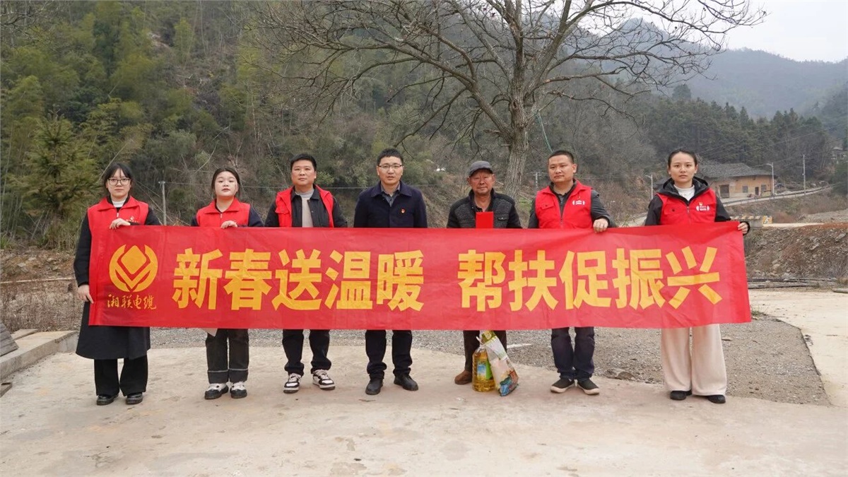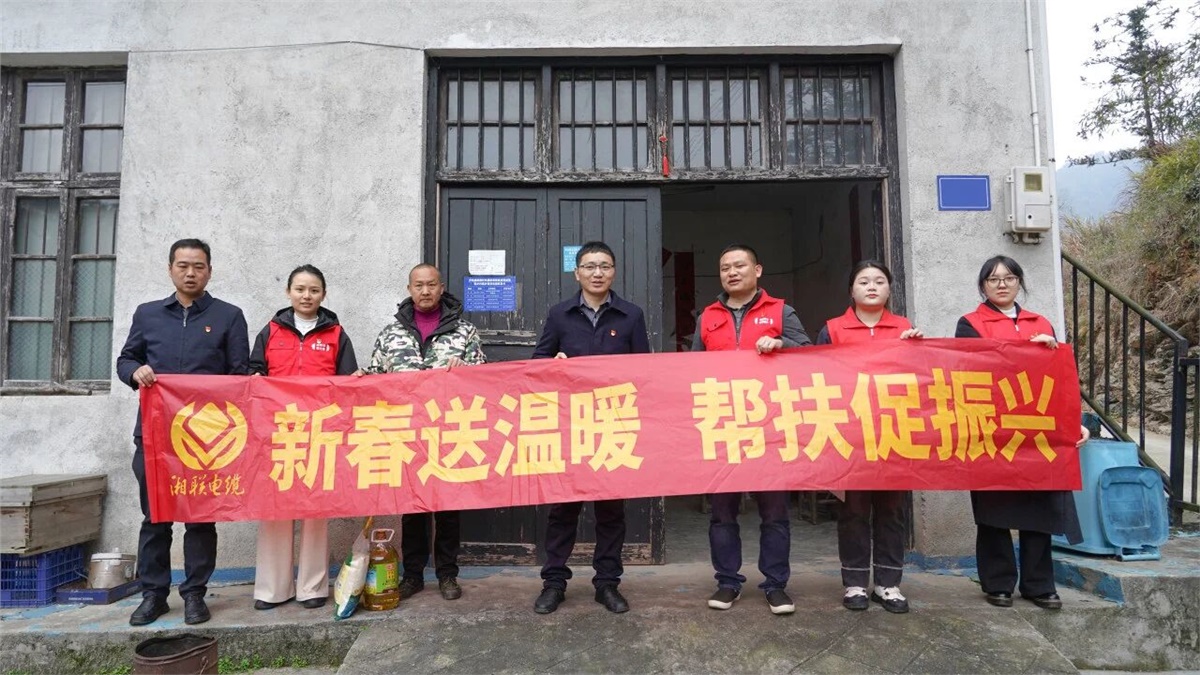 岁末寒冬,新春将至,湘联电缆党支部携手浏阳经开区乡村振兴驻村工作队,奔赴浏阳市沙市镇桃源村,开展新春慰问走访活动,为当地困难家庭送去米、油等生活物资与慰问资金,以点滴善举传递企业温情,用实际行动助力乡村振兴。