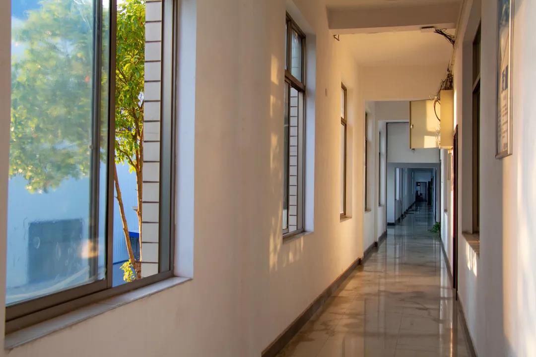 “办公走廊和走廊的窗外”