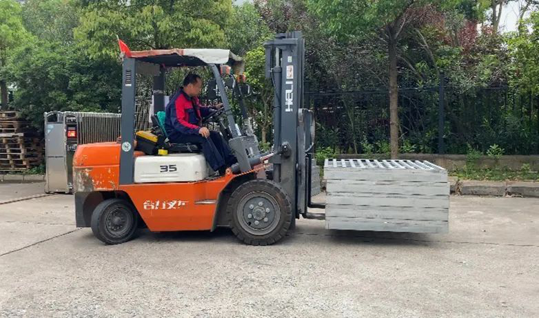 叉车比赛:参赛选手正在进行货物运送