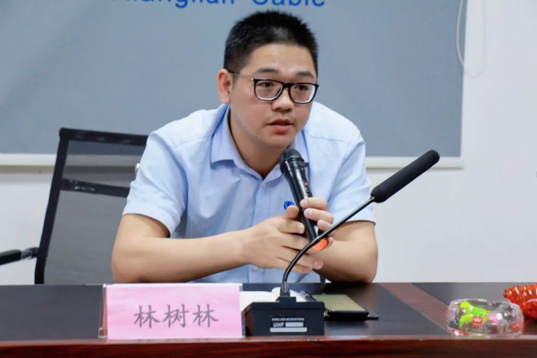 最后,人力资源部经理谭宇针对湘联电缆的“传、帮、带”员工培养政策、晋升机制等方面进行了全面介绍,他表示湘联电缆愿意为所有员工提供学习、成长的机会,希望新员工能够努力,不断提高自己的业务能力,在湘联电缆这个舞台充分实现自我价值。