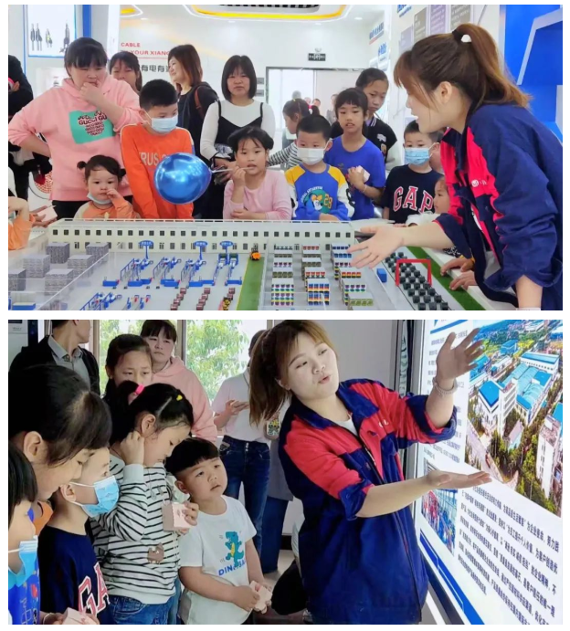 为了帮助孩子们更好地理解电缆电线制造,本次活动特意安排了展厅参观环节,在展厅,通过样品展示和讲解,湘联宝贝们能够直观的了解电缆电线的制造工艺与流程,对爸爸妈妈的工作有了初步的认识与感知。当得知爸爸妈妈的工作成果被用于医院、景区、大型商场等各种场所建设,为大家点亮灯火,传递光明时,小朋友们对爸爸妈妈的工作更加崇敬。