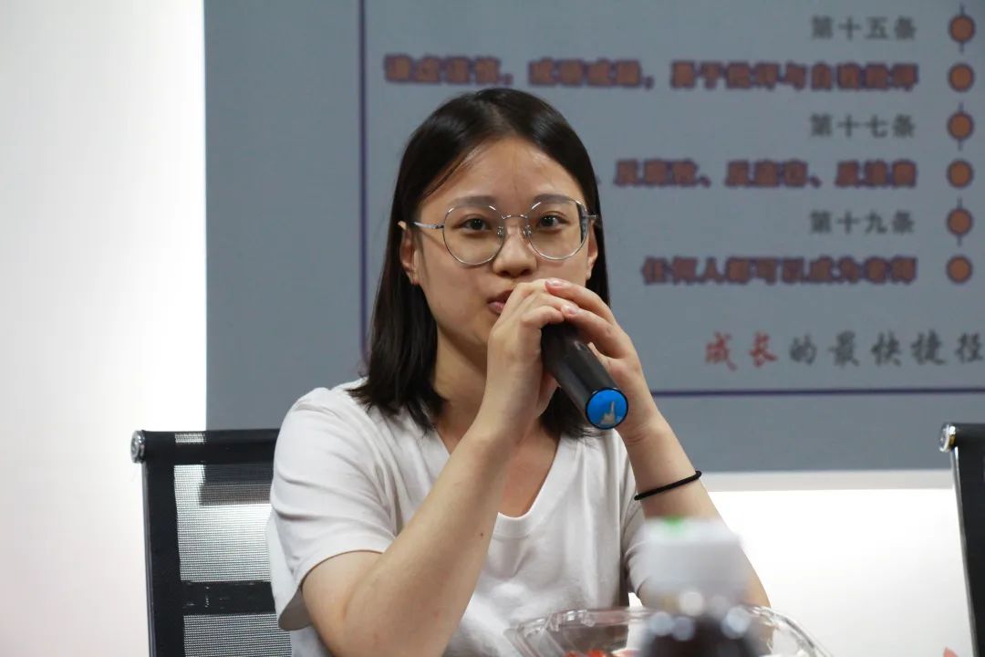 座谈会最后,品牌部总监杨洁满怀真诚,与大家分享了自己初入职场的成长经历和工作感悟,他表示保持自律十分重要,并呼吁员工们多思考、多学习,多钻研,脚踏实地干好自己的本职工作。