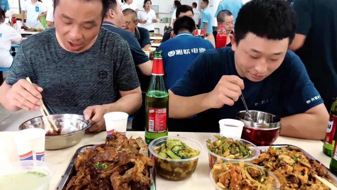 在员工餐厅,大家齐聚一堂,围桌而坐,时而三俩交流,时而举杯庆祝,时而专注美食,到处洋溢着一种欢乐的氛围。肉质鲜美的羊肉、营养丰富的羊杂汤、精致可口的小菜、清爽新鲜的水果、清凉的饮品让大家的幸福感油然而生。