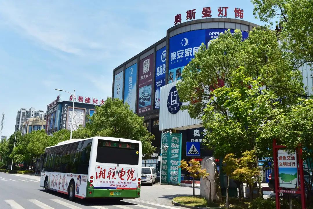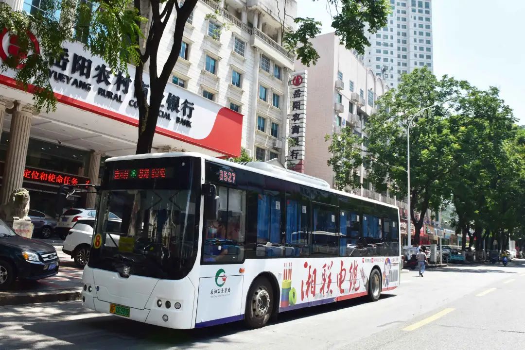 身披湘联电缆广告的公交车穿梭于