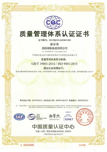 匠心工艺成就优质产品。湘联电缆拥有国内一流的电线电缆生产和检测设备,设有恒温试验室、电气性能实验室和机械性能实验室,能够满足行业内各项线缆产品的生产和检测要求。同时,公司建立了高标准质量管理体系,规范工艺操作流程,以工艺促质量,层层把关,道道控制。