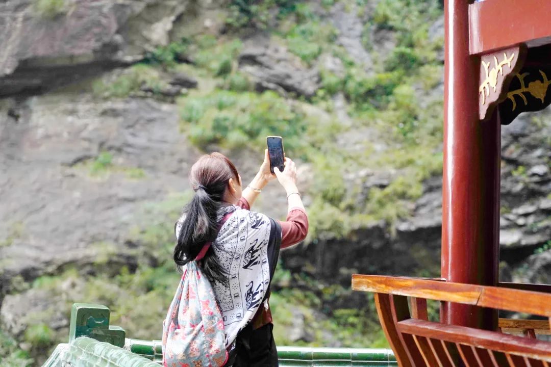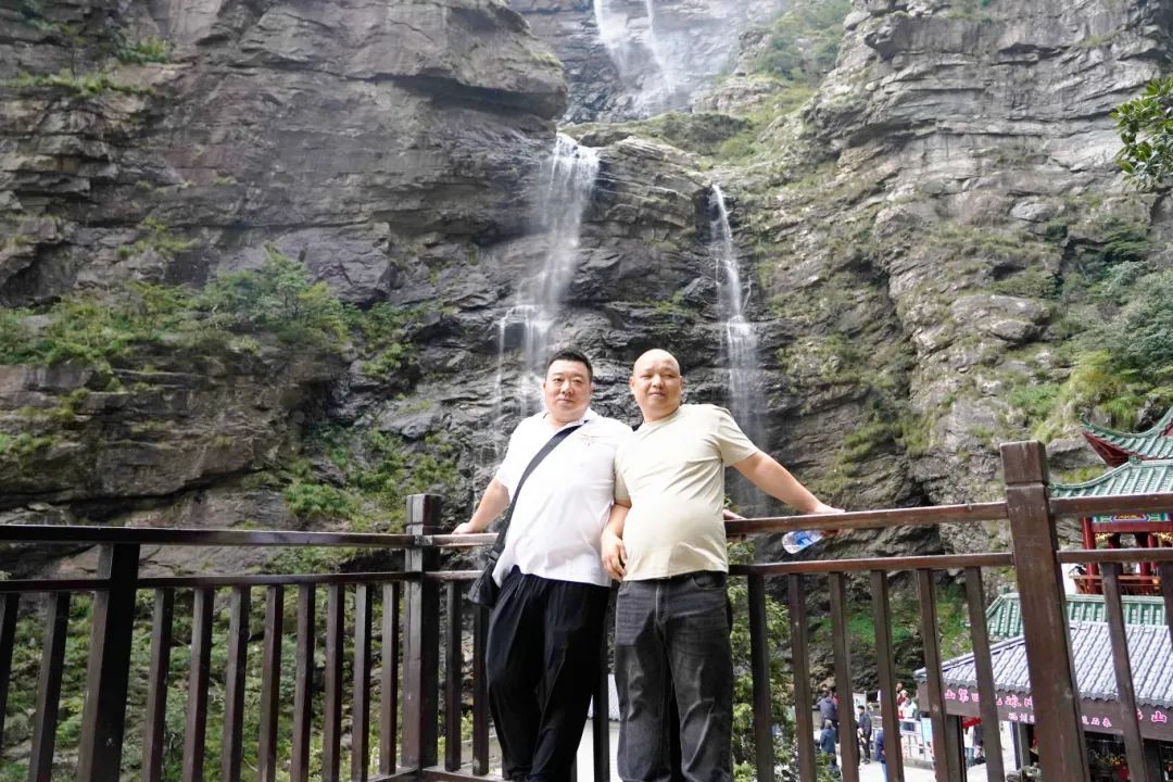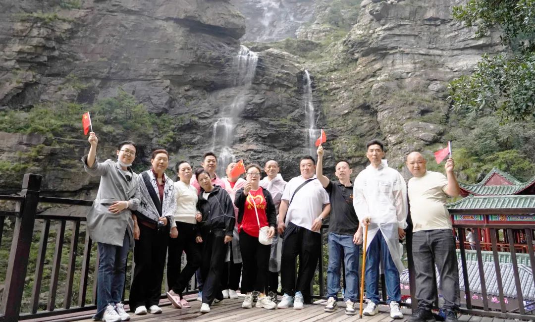 第四天清晨,湘联家人们踏上了前往三叠泉瀑布的旅程。山路蜿蜒曲折,陡峭难行,对团队的体力与毅力提出了严峻的挑战。但这丝毫没有影响大家向上的信念。大家展现出了“一群人、一辈子、一条‘芯’、一根线”的湘联四一精神,团结协作,互相鼓励,奋力向上,携手登上三叠泉瀑布,为这段旅程划上了美满的句号。