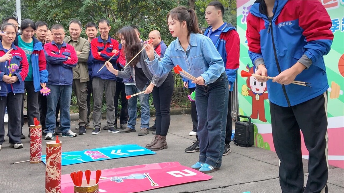 个人项目环节同样精彩纷呈。“321请回答”猜歌游戏中,每当旋律响起,参赛者们便凝神细听,快速反应,抢占答题擂台,现场热闹非凡;投壶项目中,大家全神贯注,尽显专注与沉稳,感受传统运动的魅力;“公鸡下蛋”项目更是引得全场笑声不断,成为当天最受欢迎的项目之一。