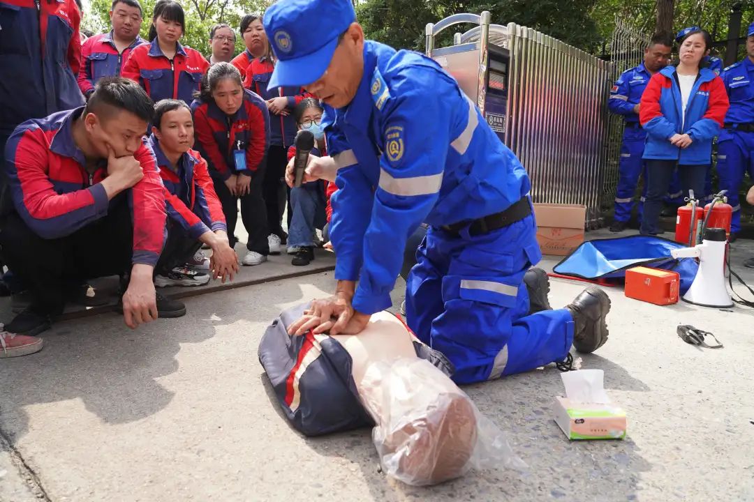 随后,专业消防员以理论结合实际,现场讲解了逃生注意事项、报火警通讯知识,并现场演示了灭火器、消防栓、水枪等消防器材的使用方法和心肺复苏的操作方式,全面提升员工的消防技能。