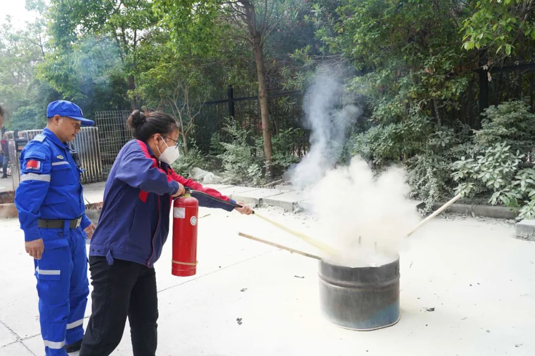 本次演练以实操为主,为确保所有员工具备基本消防能力,每一位员工都在专业消防队员的指导下,完成了使用灭火器扑灭火堆、消防水枪对接等实际操作,切实增强员工的自防自救能力。