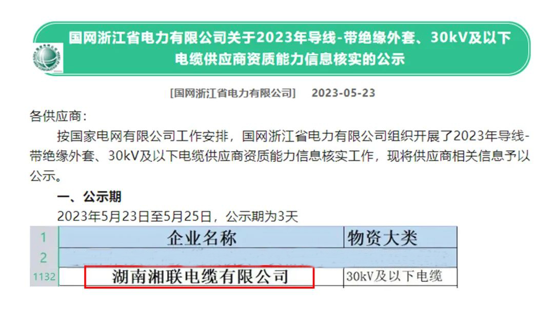 5月,凭借出色的产品品质、优质的服务和良好的声誉,湘联电缆通过了审查,成为2023年国网供应商。