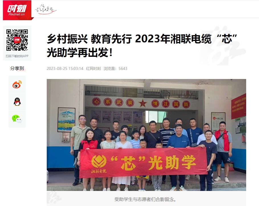 2023年,为增强员工的思想道德建设,湘联电缆有序开展公益助学、怀念袁隆平院士、关爱老人等活动,多次被潇湘晨报、湖北新闻、红网、澎湃新闻等知名媒体推荐报道。