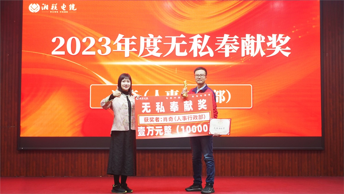 学先进应争当先进,赶先进才能先进辈出。公司的发展离不开每一位恪尽职守、辛勤付出的优秀湘联人,在盛会上,对2023年度表现优异的个人和团队进行了一一表彰颁奖,颁发奖项包含主人翁精神奖、卓越功勋奖、无私奉献奖等十二个奖项,奖品包含商品房、现金、荣誉证书、奖杯,激励全体员工以先进为榜样,向优秀靠近,2024年再创佳绩。