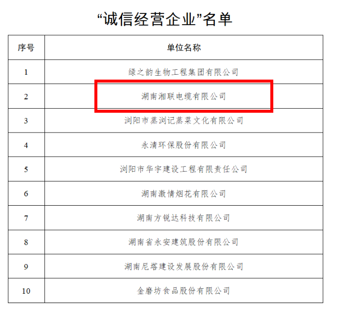 以诚立信,以信致远,多年来,湘联电缆以科学的经营管理理念,运用信息化工具对产品的设计、研发、生产、配送、销售等进行全生命周期管理,全国建立500多个销售网点,优质服务24小时不打烊,湘联电缆的诚信体现在每一根线缆的生产制造、每一次的营销服务、每一次的物流配送。此次获评“诚信之星”是对湘联电缆诚信经营、社会责任等方面卓越表现的高度认可,未来,湘联电缆也将继续用每一次的诚信履约高砌用户心中的信任之墙。