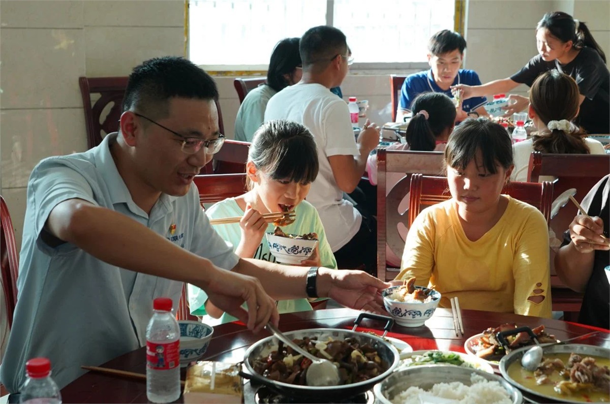助学不仅是物质上的援助,更重要的是对孩子们精神上的激励与引导。为了拉近与受助学生的情感距离,在浏阳经开区驻苗儿滩帮扶工作队和苗儿滩政府的协调帮助下,8月22日傍晚,湘联电缆“芯”光助学基金会邀请受助孩子和其家长们来到苗儿滩政府,通过一起吃晚餐和开展座谈会的形式,与受助学生面对面交流,了解他们的学习和生活情况,并鼓励学生们要立志向上,好好学习,砥砺成才。