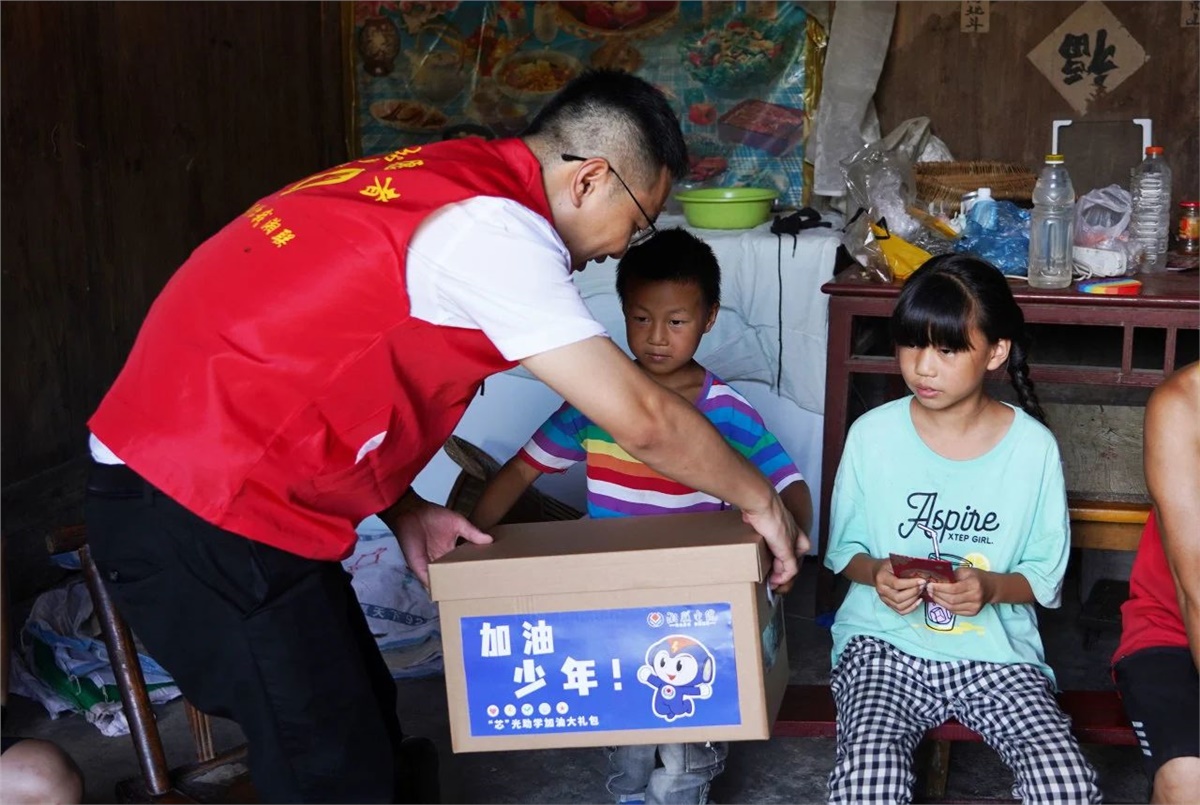 8月23日,在当地领导干部的陪同与帮助下,湘联电缆“芯”光助学基金会的志愿者们对苗儿滩镇的6个村,8个家庭进行了实地走访,并将“芯”光助学基金和加油大礼盒送到了孩子们手中。