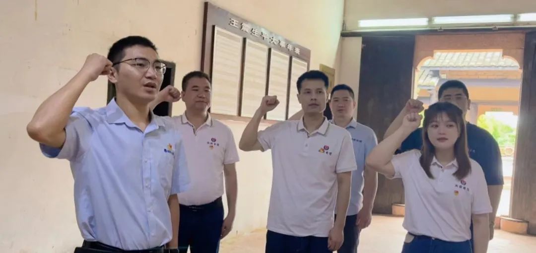 参观完后,为坚定入党初心,党员们面对王震将军画像,举起右拳,再次庄严宣誓,重温入党誓词,感受涌动初心。